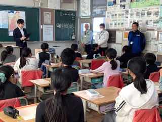 5年生は、西尾市の危機管理課、河川港湾課の方々より、マイハザードマップの作り方を教えていただきました。