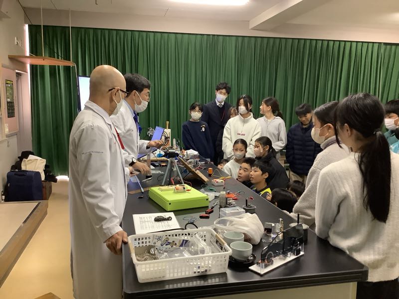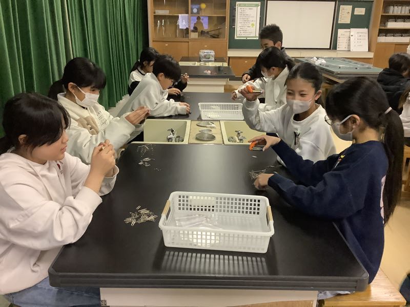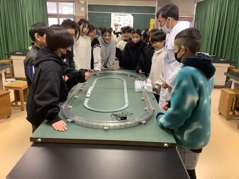 5年生はデンソーサイエンススクールを行いました。電磁石について講師の先生に教えてもらったり、電磁石を自分で作ったりしました。リニアモーターカーの模型の実演に子どもたちは興味深々で食い入るように観察していました。