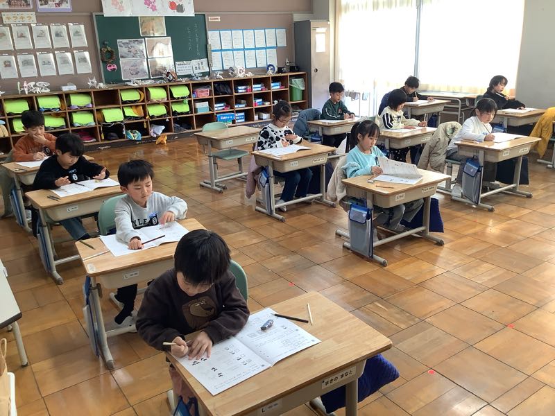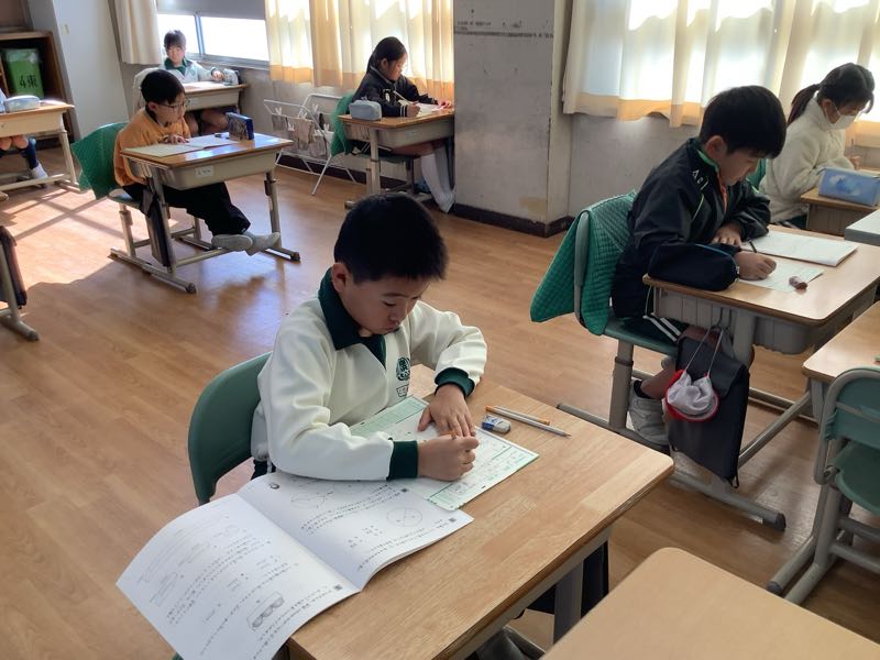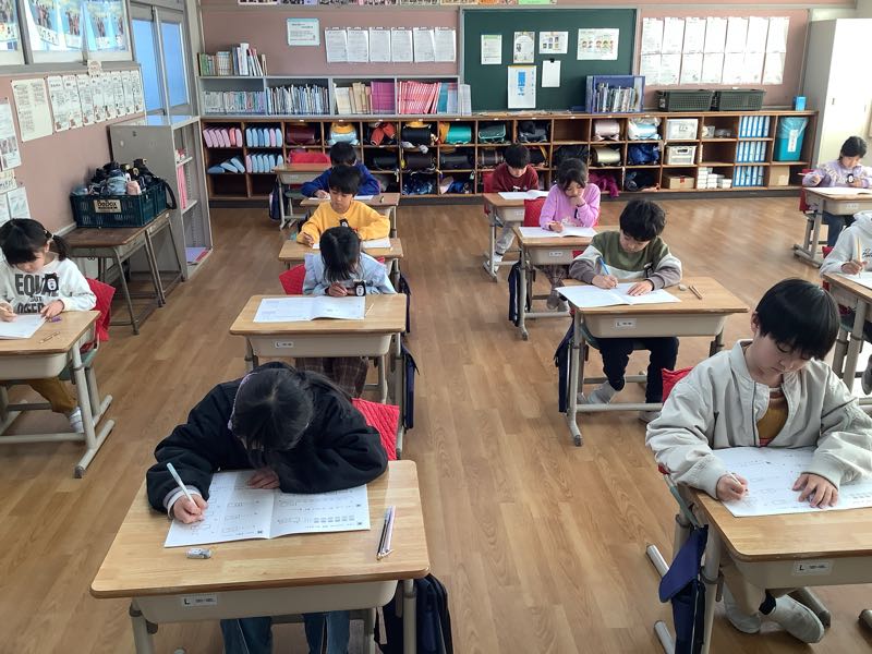 今日は全学年、国語と算数の学力テストを行いました。普段のテストとの違いや問題数の多さに戸惑いながらも、粘り強く最後まで取り組む姿が見られました。