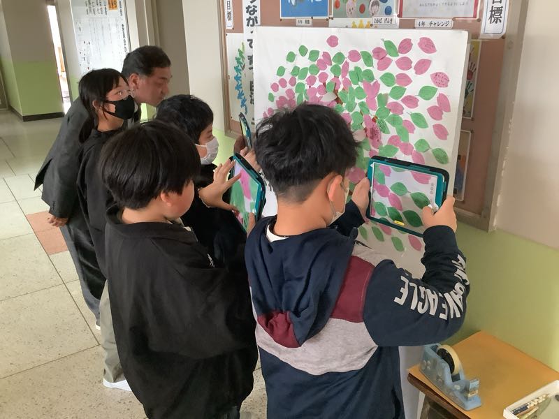 後期最後の委員会が行われ、委員会活動の振り返りを行いました。児童会はふわふわ言葉を全校児童から集めた『ふわツリー』の企画について、集まり具合を確認していました。