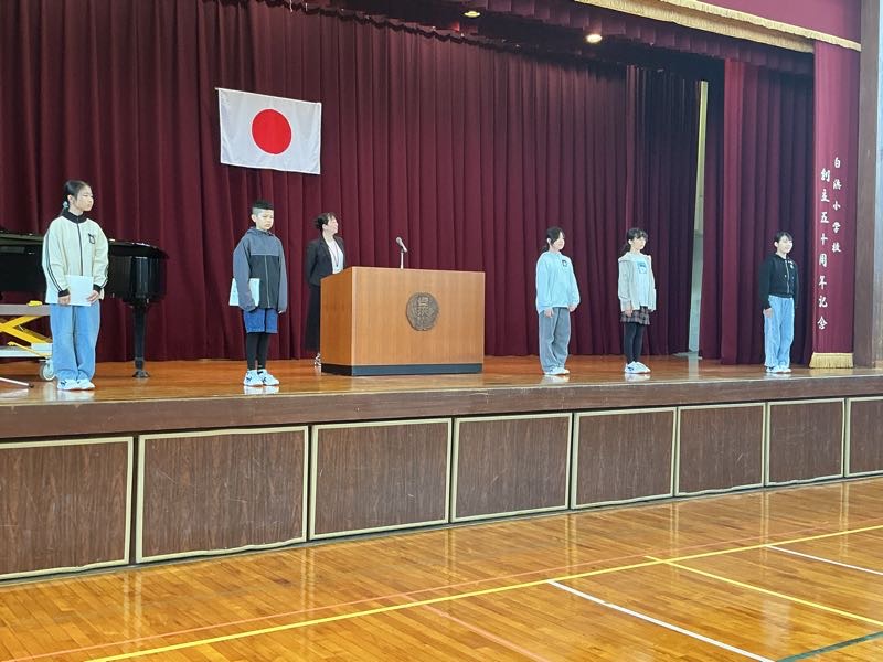 全校朝会で委員長の任命(児童会役員は昨年度末に任命済み)と学級委員の任命を行いました。委員長は任命後に委員会活動の抱負を語りました。また、学級委員はクラスのリーダーとして呼名に対して立派な返事をすることができました。