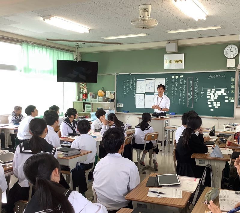 教育実習生による道徳の授業の様子です。生徒たちは、グループで話したり考えたことをプリントにまとめたりしていました。また先生の話にしっかりと耳を傾けていました。