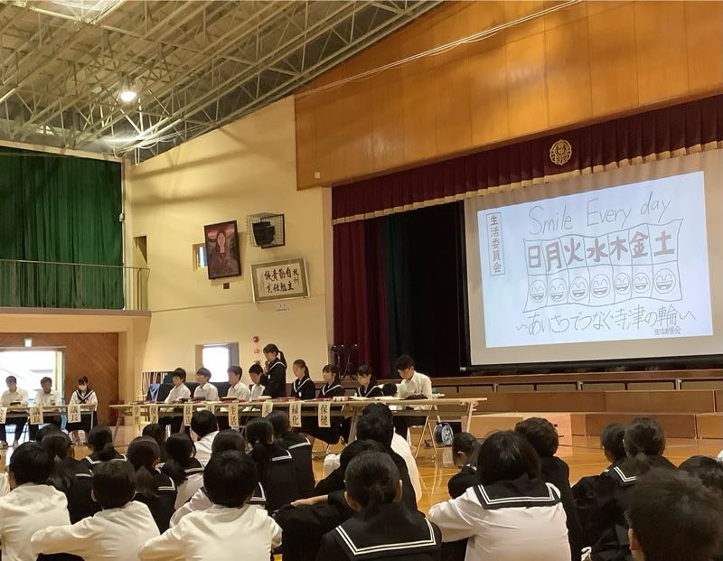 本日の生徒総会の様子です。生徒たちは、後期の学校生活をよりよくするために意見を出し合っていました。生徒会・各委員長が出された意見を参考にしてより活動を充実させていくだけでなく、全校で活動を支えていきましょう。