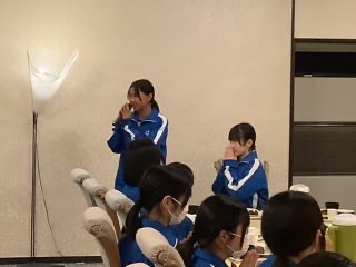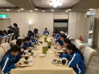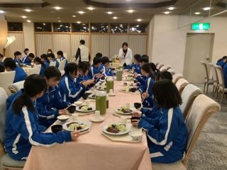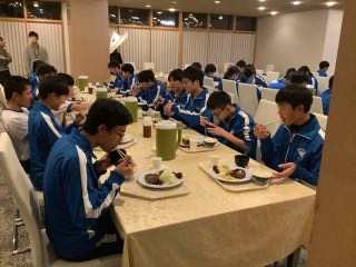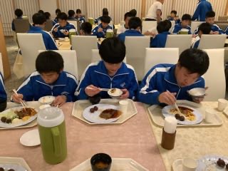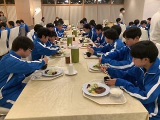 スキー教室が終わったあと、みんなでお風呂に入り、冷えた体がぽかぽかに温まりました。湯気の中には、今日一日のがんばりを語り合う楽しそうな声が広がっています。そして夕食の時間。スキーのあとのごはんは格別で、どのテーブルにも「おいしい!」という声と笑顔があふれていました。たくさん動いて、たくさん笑って、心もお腹も満たされたひとときになりました。