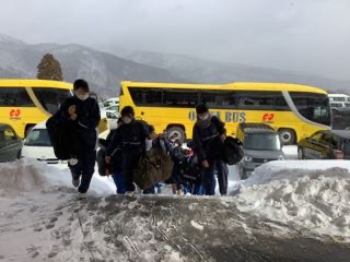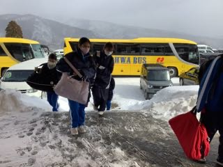 たくさん雪が降っています。西尾と違って雪景色に東中生は驚いていました。