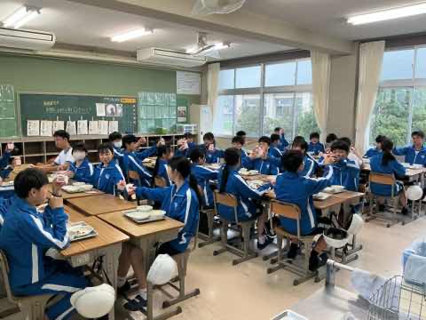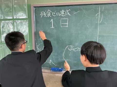 4/10(金)から今年度の給食が始まりました。2年A組では残食ゼロ伝説の始まりを祝って牛乳で乾杯をしました。背面黒板にカウントアップアートを描いて、みんなで気持ちを高めていきます。
