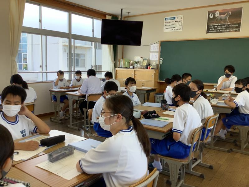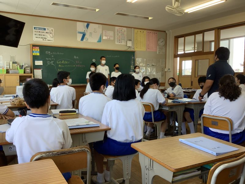 2年総合学習では「理想のコミュニケーション」をテーマに追求しています。自分のコミュニケーションで足りないことは何かグループでアドバイスし合って、改善しようとしています。アイコンタクト、うなづき、共感のリアクション、笑顔等を語ったり、練習したりしました。