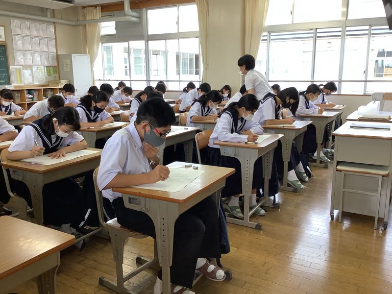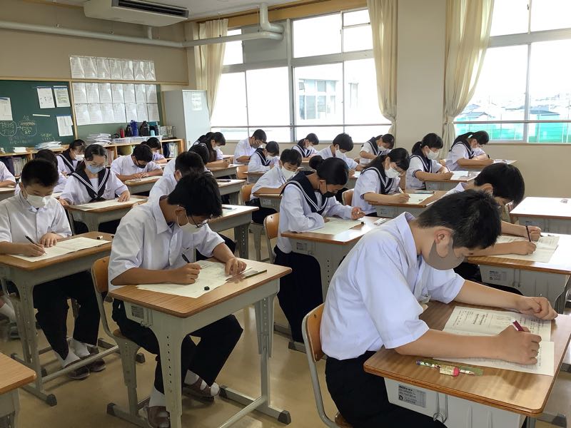 今日から1学期の期末テストが始まりました。特に1年生にとっては、初めての定期テストになります。小学校とは違い、9教科全部で筆記テストということになります。 テストは25日(金)まで行われます。