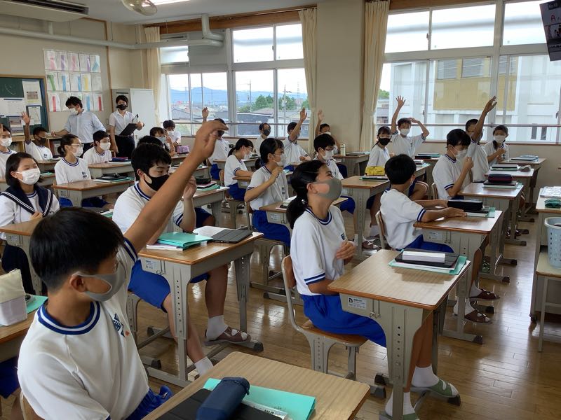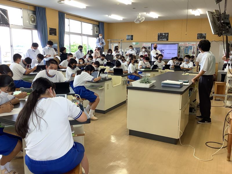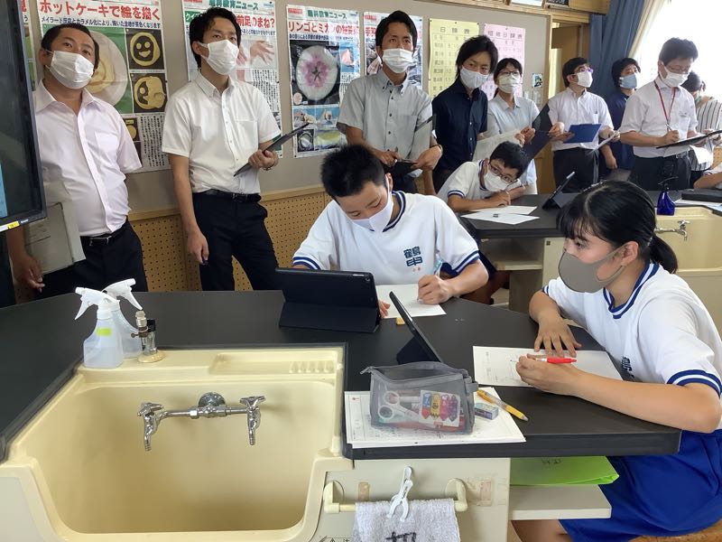 6限、1の8と2の8の2クラスで研究授業が行われました。1の8は家庭科、2の8は理科でした。両方の授業とも、タブレット端末を活用する姿がありました。