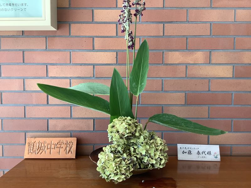 今週の生け花は、水カンナ、アジサイです。日ざしも強くなってきました。梅雨明けも近いようです。