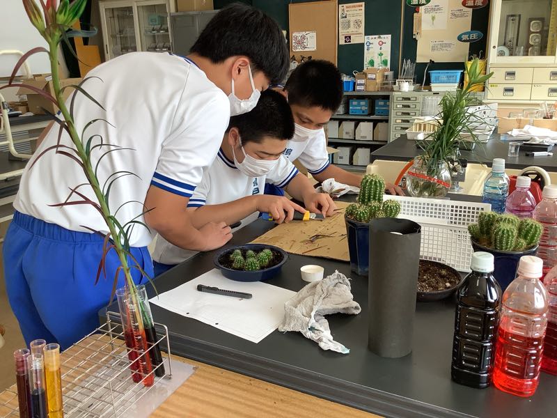7月30日、科学部の追求チームはユリの維管束を観察していました。ユリの維管束が水や養分を運搬する役目であることを見ることができました。タブレットにはっきりと写すことができて、追求が進みました。