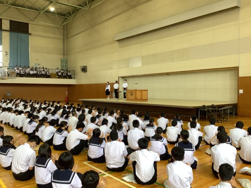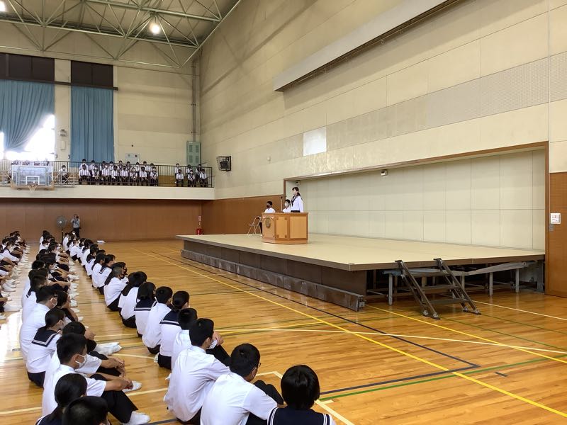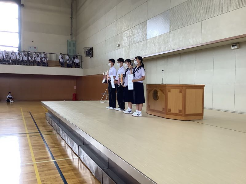 1学期の終業式が行われました。3学年の代表のスピーチは、気持ちのこもった良いものでした。また、部活動の市大会の結果報告もありました。明日から夏休みですが、部活動の大会も続きます。健康に安全に気をつけてすごしていきましょう。