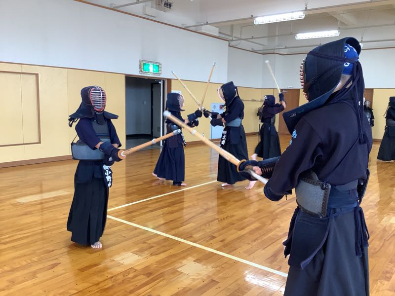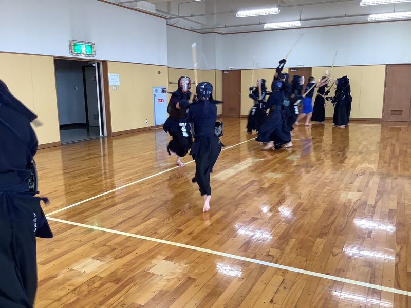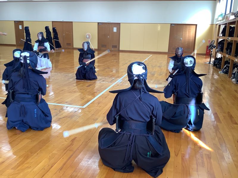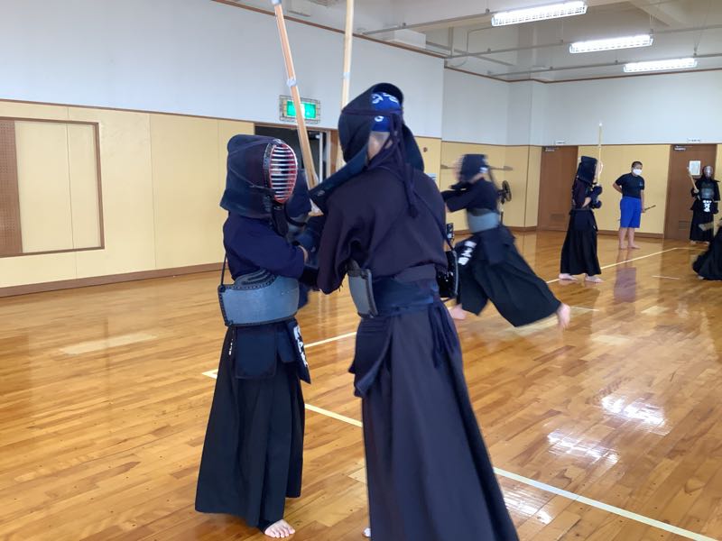 剣道部は、8月7日に三重県で行われる東海大会に出場します。全校集会で激励され、午後の練習もいっそう力がこもりました。
