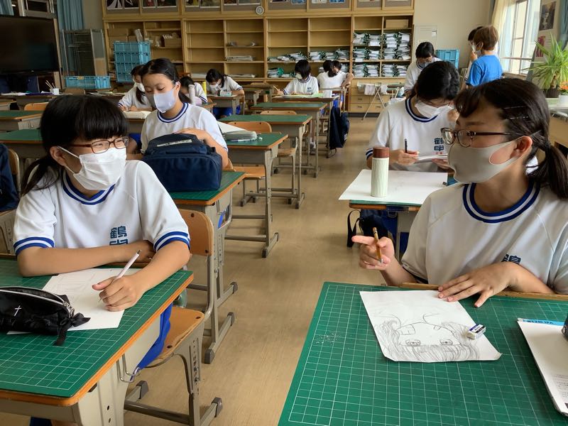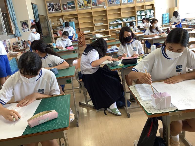 美術部では8月19日に提出する自由応募作品に取り組んでいます。午前中に集中して取り組めるので、はかどります。山本学園主催のファッションイラスト画コンテストに応募するメンバーは「魔法の使える🪄お姫様をテーマにしたので、ブルー系、フリル付き、魔法ステックがポイントです」と話していました。SNS啓発4コマ漫画コンクールに挑戦する部員が起承転結ストーリーを相談していました。
