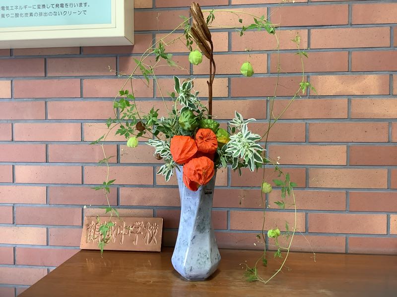 今週の生け花は、フウセンカヅラ、シラユキケシ、ホウヅキです。今年のお盆は、大雨で大変でした。早く天候が回復することを願います。