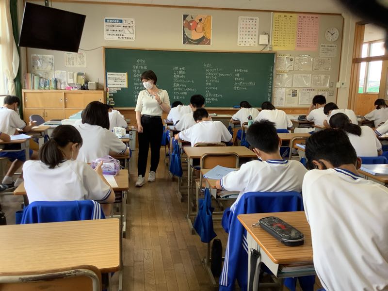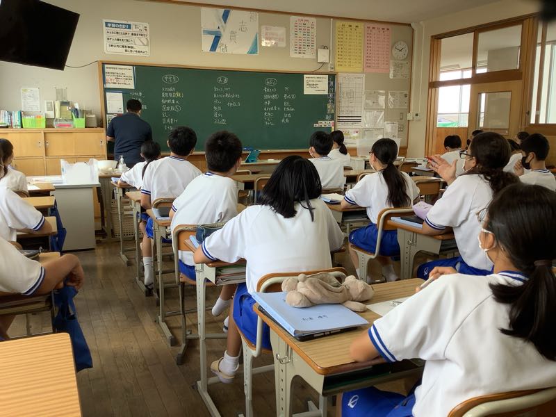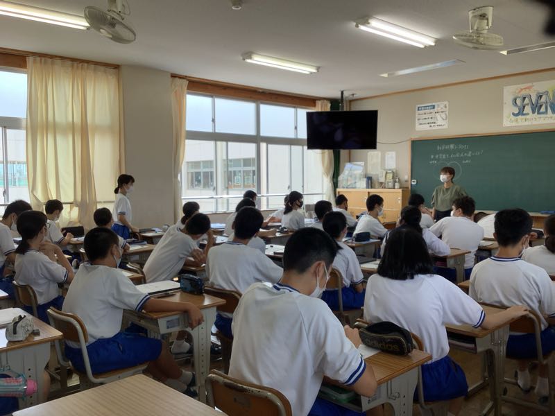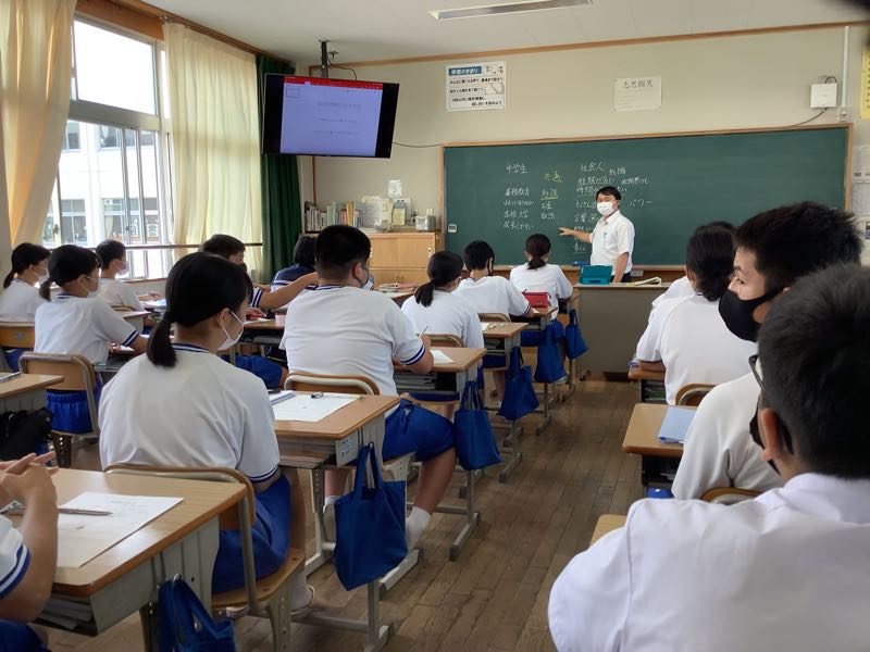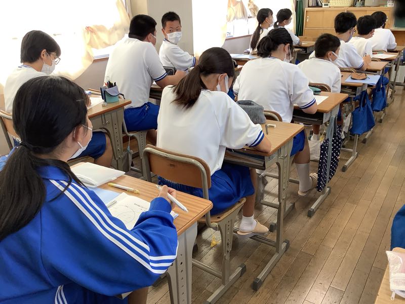 2年生は9月末に勤労体験学習②を行います。そのために今日のテーマは「中高生と社会人の違い」です。校則に縛られている面や、勉強第一、部活動中心、親に頼る中高生。経済的に自立、責任の伴う社会人。自由あるけど自己責任の社会人、、、意見交換をして考えました。