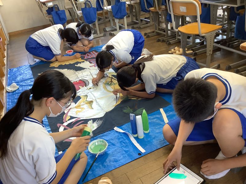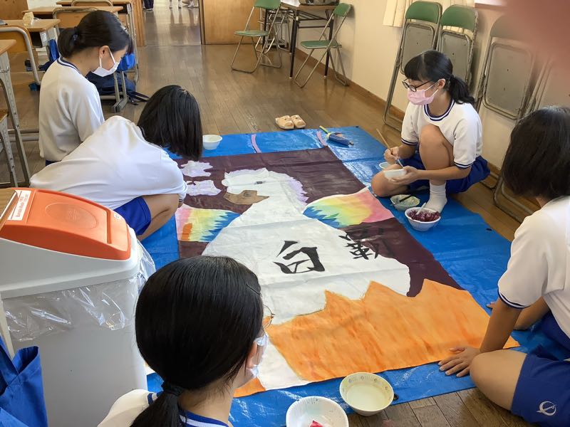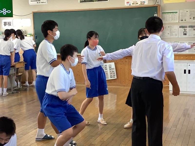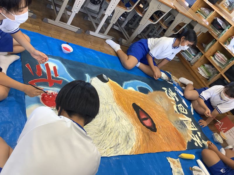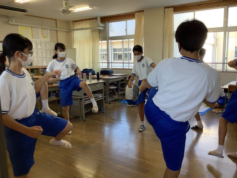 9月28日、授業後。アイデアにひとひねりを目指したのは2年1組。リーダーたちは改善させていきました。2階の各教室は跳んだり、跳ねたり、笑ったり。