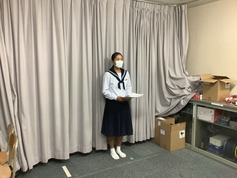後期生徒会役員選挙は、今日から選挙活動が開始されました。例年であれば、朝や給食中、あるいは帰りに直接呼びかけをしていました。しかし、今回は感染症対策としてテレビ放送で、立候補者が全校に呼びかけをするという形式をとりました。どの候補者も各自の公約を真剣に訴えていました。 なお、立会演説会及び投票は今月30日(木)に行われます。
