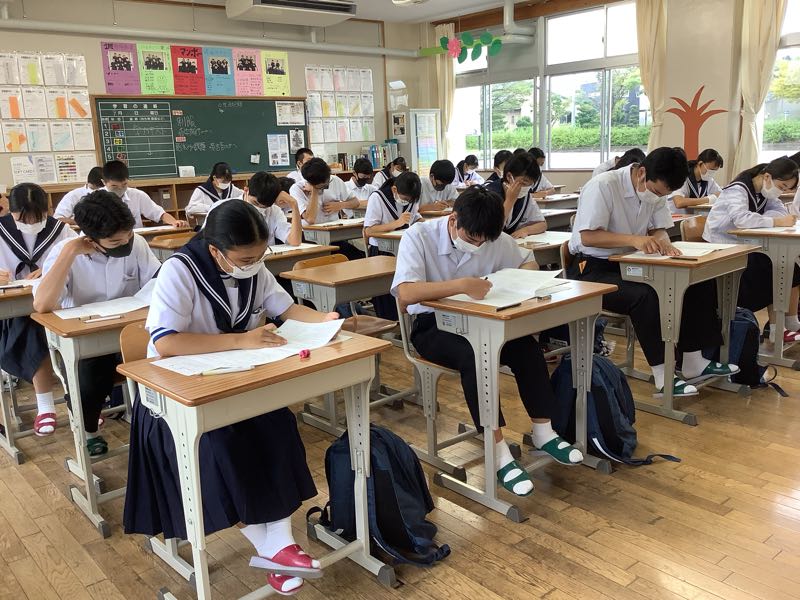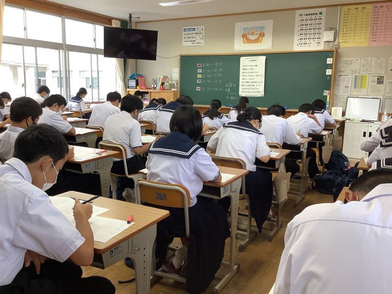 2学期が始まり、今日は学力テスト・課題テストでした。特に3年生にとってはこれからの進路に向けて重要なところです。3年生の教室からは真剣さが伝わってきました。