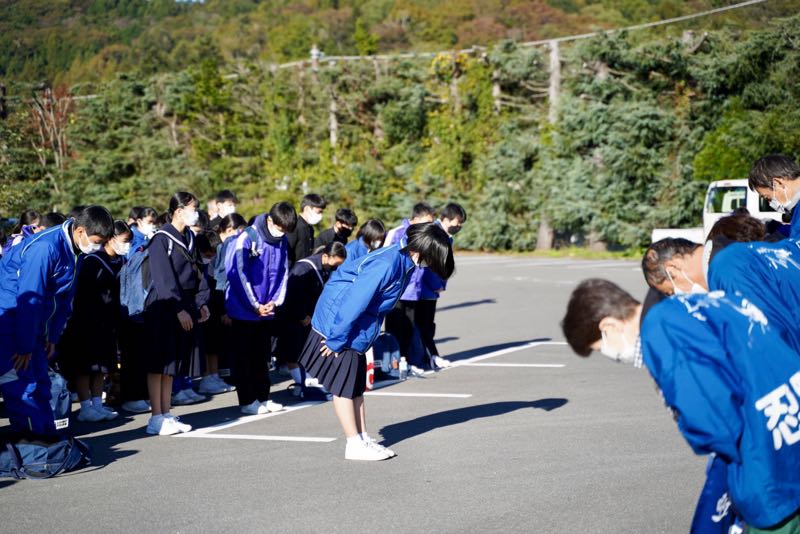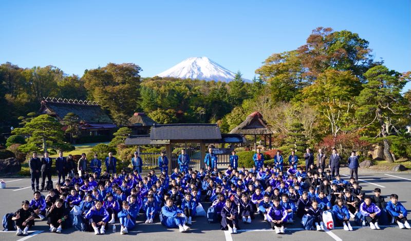 退村式を行いました。お世話になった方々への感謝の気持ちを伝えた素敵な式になりました。雲一つない空と富士山はとてもいい眺めでした。今は各クラスのコースへと移動中です。