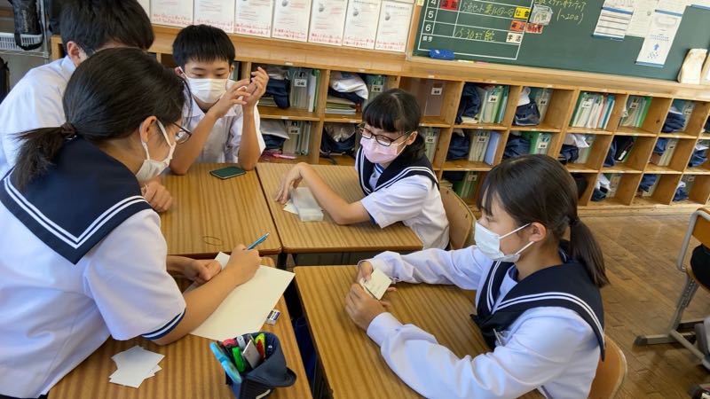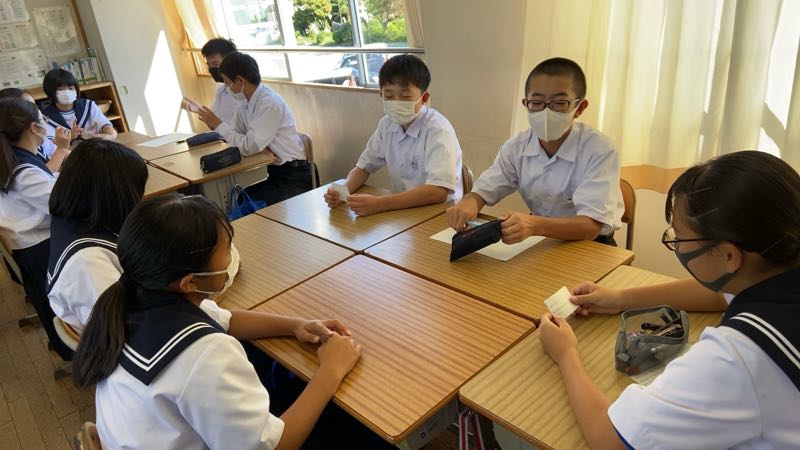 テーマは「お祭りの出し物を決めよう」として、意見カードと役割カードをもとに話し合いしました!!
