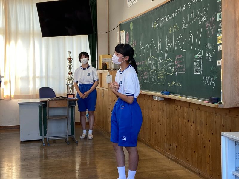 保護者の皆様、コロナ禍にもかかわらずお子様を送り出していただきありがとうございます。冬の制服を準備していただいたことにも感謝しています。本日はお子様のがんばりを褒めていただけたらと思います。
