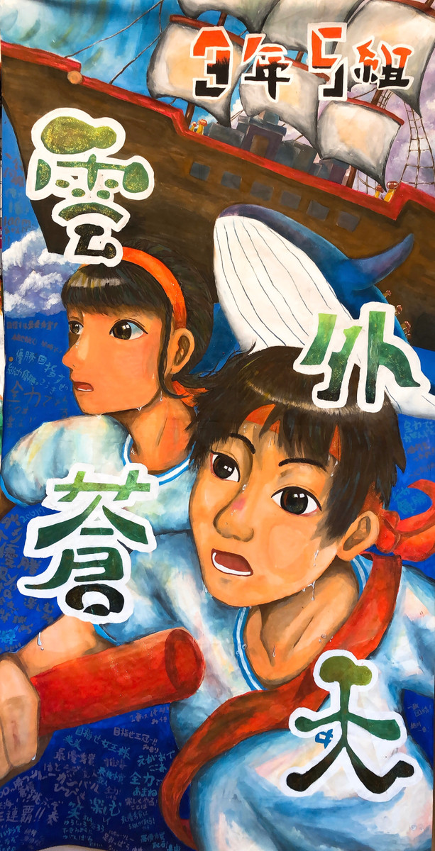 夏休みから制作に取り組んできた応援旗がついに完成しました!