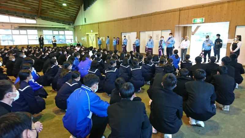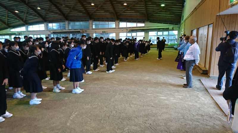 5組から9組は「勝山ふれあいドーム」で入村式を行いました。各クラスを担当する民宿のオーナーさんが紹介され、生徒たちは期待に胸を膨らませていました。修学旅行最後の夜、しっかり休んで明日に備えましょう。