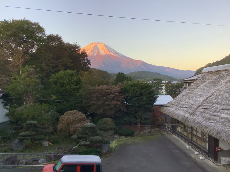 修学旅行も3日目、最終日となりました。早朝の気温は、忍野村でも今年最低を記録しました。民宿から富士山が綺麗に見えました。