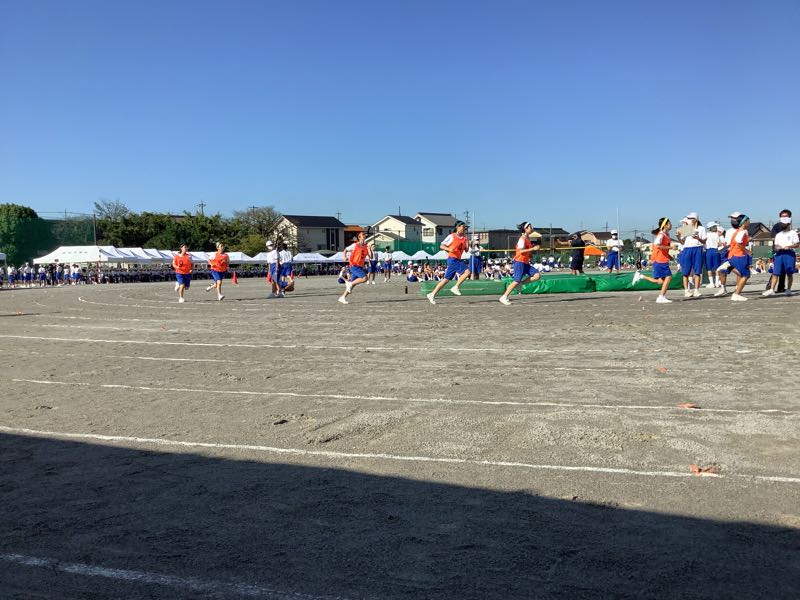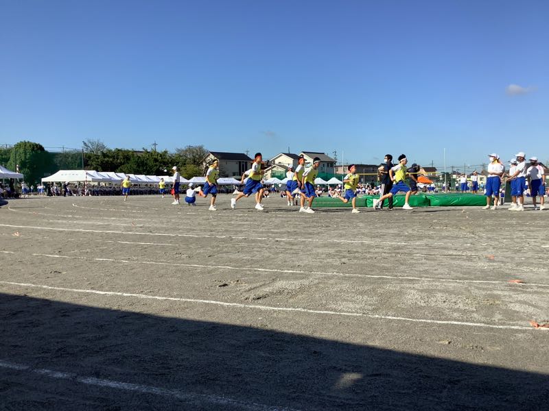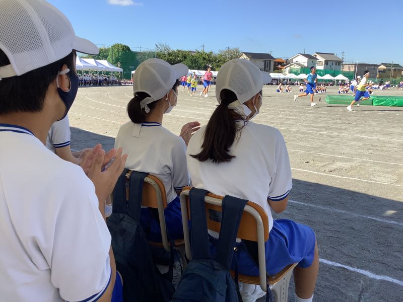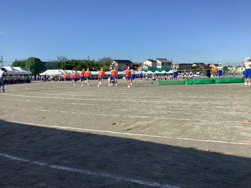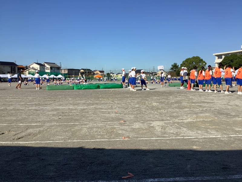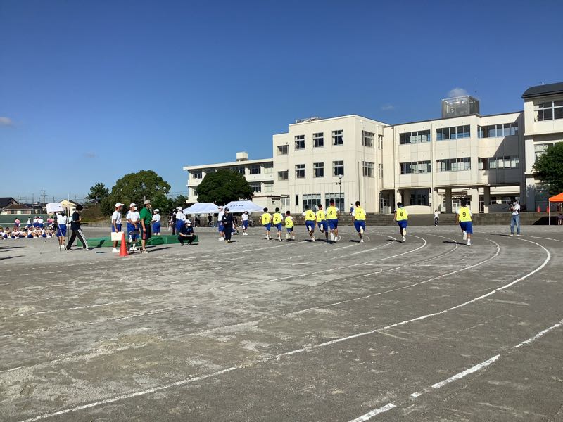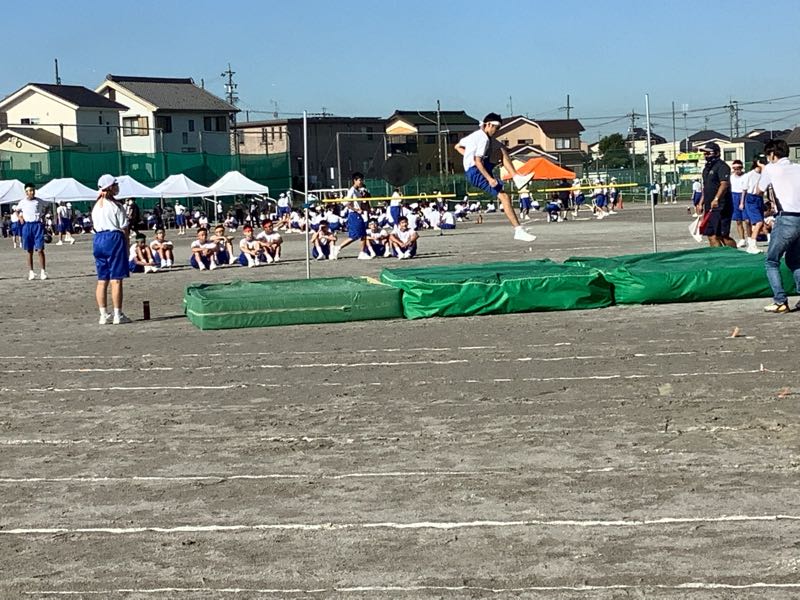 昨夜のたくさんの雨。今朝の快晴。待ちに待った鶴中体育大会が始まりました。走高跳び、走幅跳、メディシンボール投げが始まりました。800M走を全力で頑張る女子。1400M走を汗💦ダラダラで駆けていく男子。
