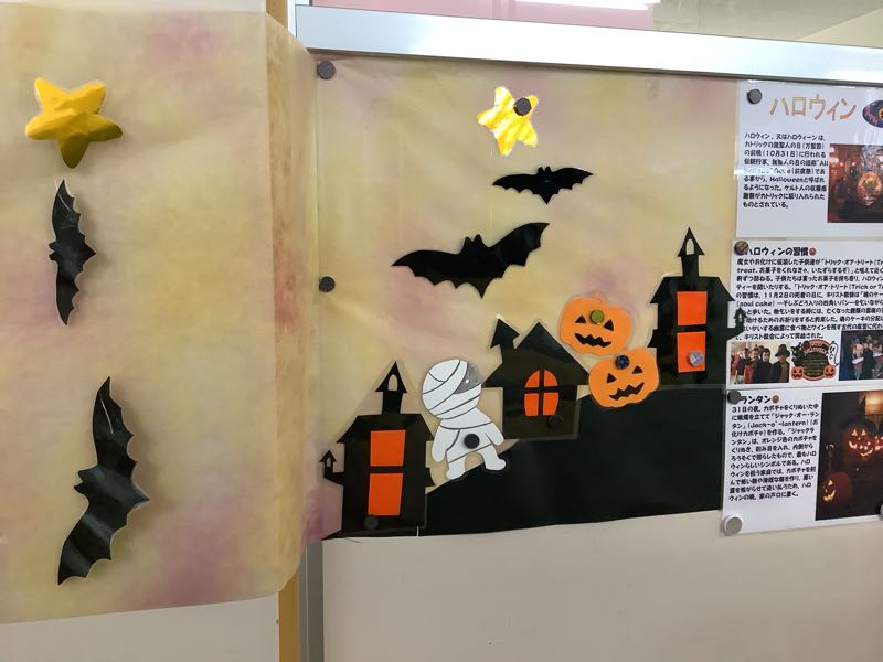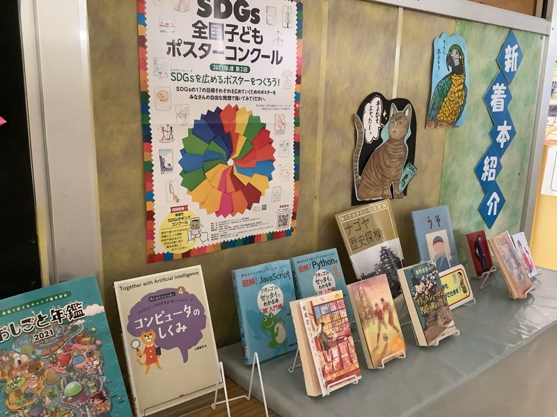 10月に入りました。今日から緊急事態宣言が解除されました。図書館ボランティアさんが廊下掲示をしてくださいました。ありがとうございます。みなさん、図書館に足を運んでください。