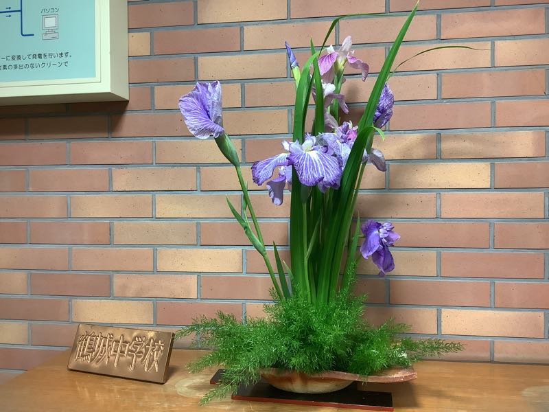 今週の生け花は、ハナショウブ、ホタルソウです。