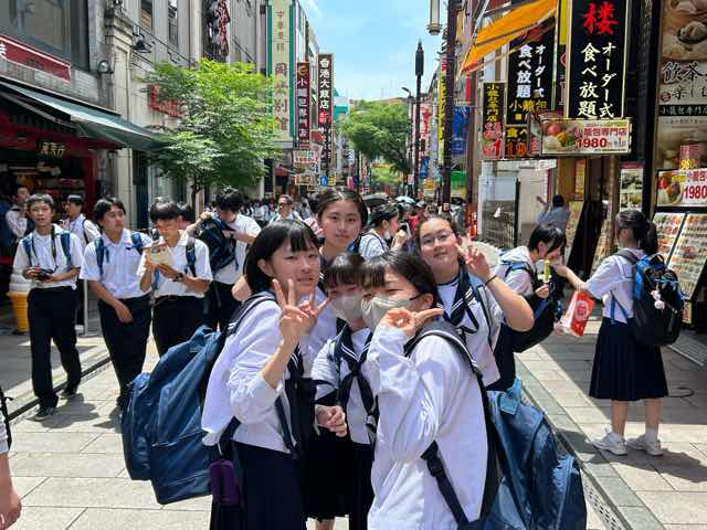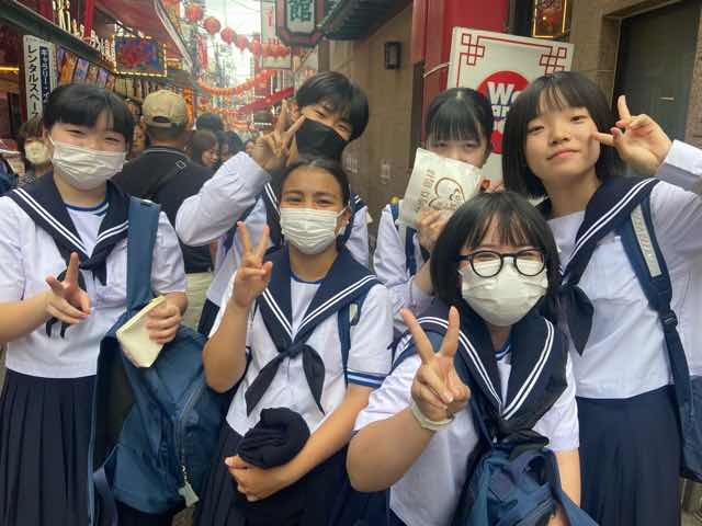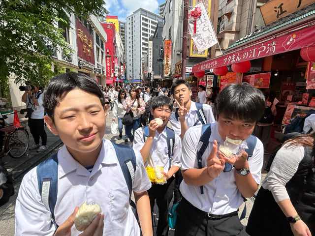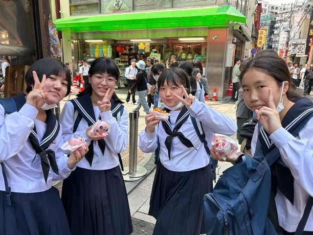 修学旅行最終日。午前中はアクアパークへ行き、お昼ご飯には横浜中華街で食べ歩きを楽しみました。小籠包、タピオカ、ダージーパイ、いちご飴みんな嬉しそうに食べていました。楽しい3日間、あっという間でした!全員揃っての旅行は格別です。