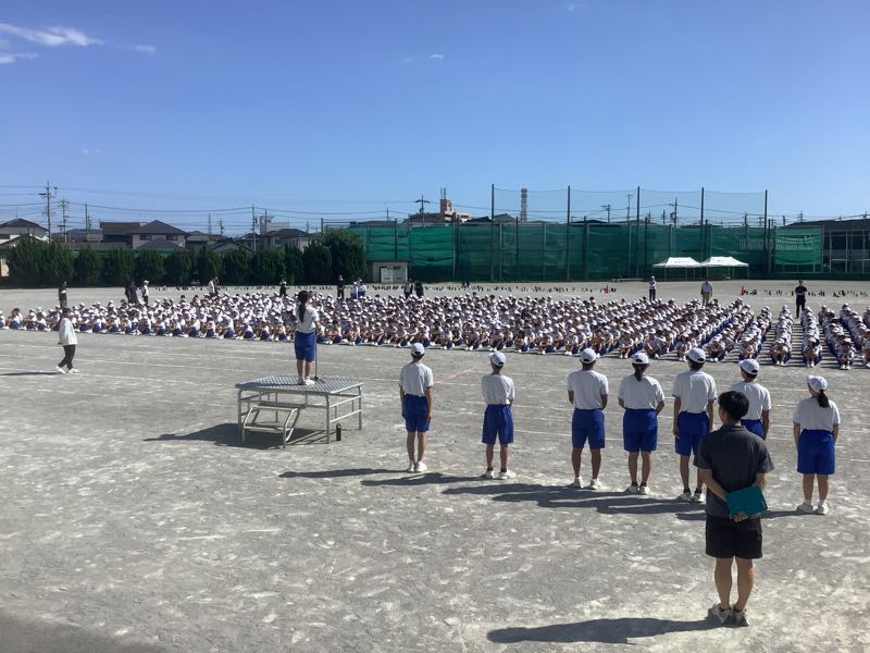 9月も今日で終わり、体育大会まで2週間余りとなります。 今日から体育大会の練習が入っていきます。5時間目は、体育大会の開閉会式の練習を行いました。全校千人が一同に集まるのは壮観です。 授業後は、応援練習も始まっていきます。体育大会モードへ突入です。