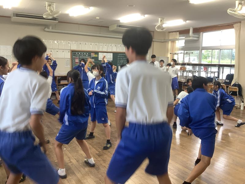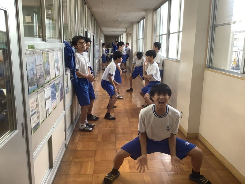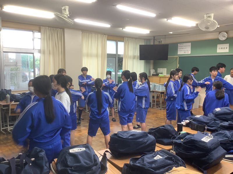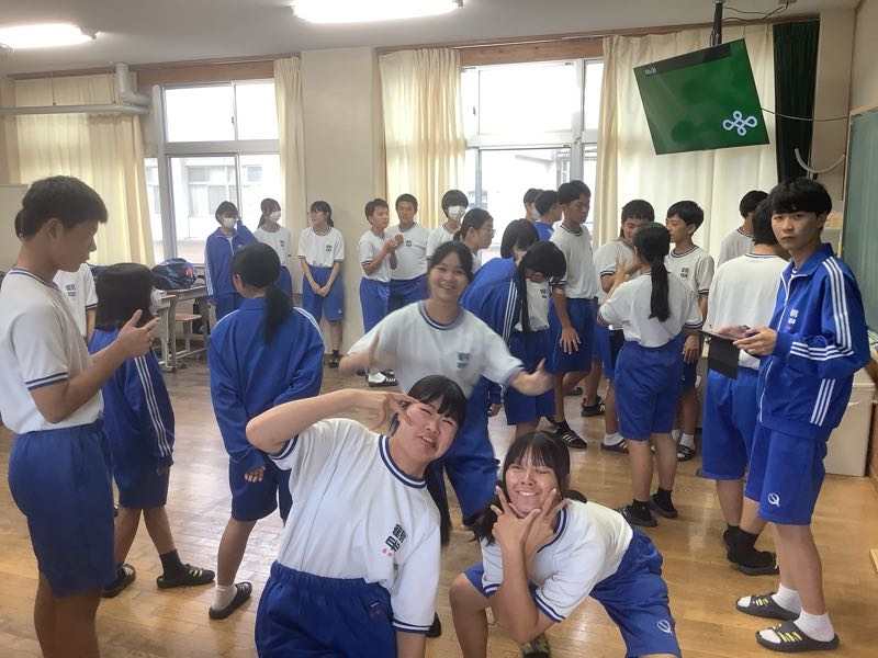 10月に入りました。授業後の応援合戦練習も始まりました。 今日は応援合戦練習の時間、急な雨で外での練習ができず、室内での活動になりました。3年生の練習の様子です。