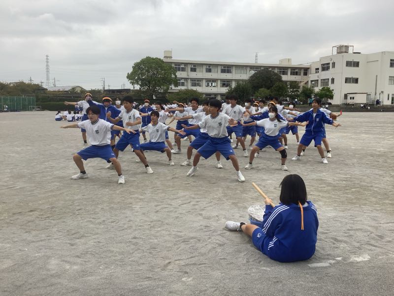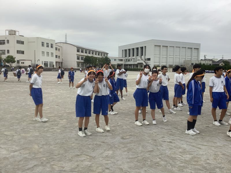 今日は、体育大会の予行練習でした。しかし、1時間目の途中で小雨が少し降り出し、2限と6限を入れ替えて、日程を進めました。