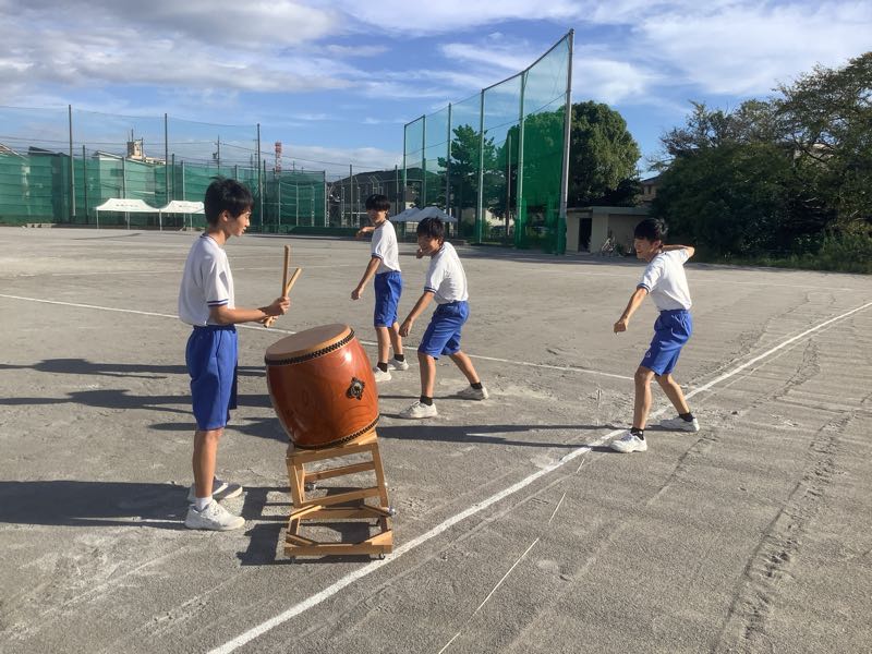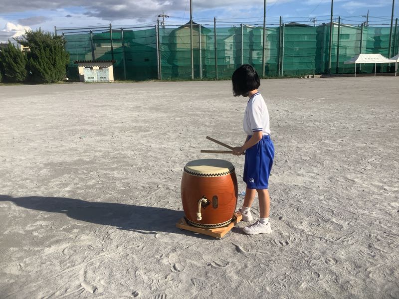 また、今日から太鼓練習が始まりました。運動場に太鼓の音色が響きました。