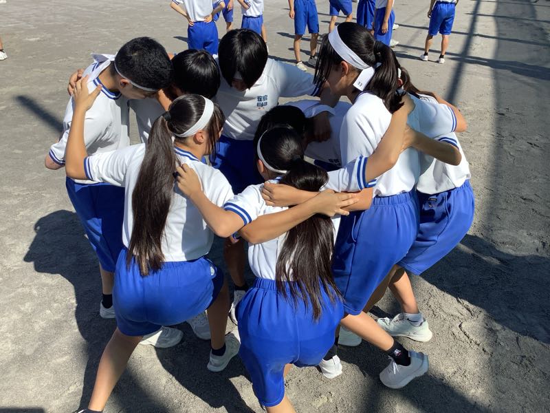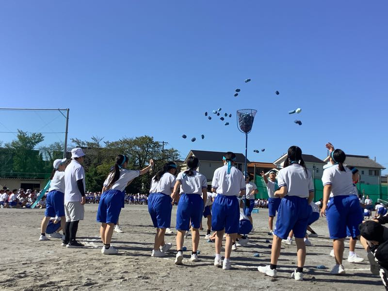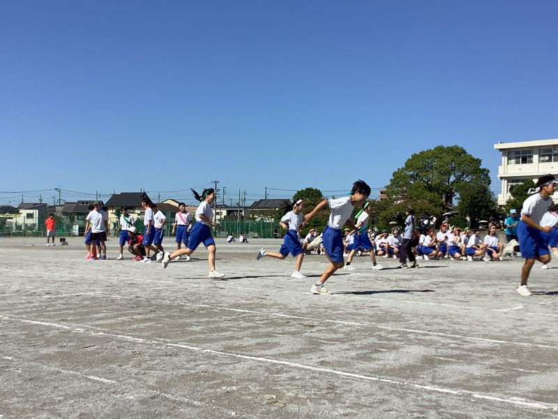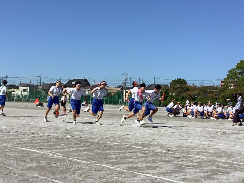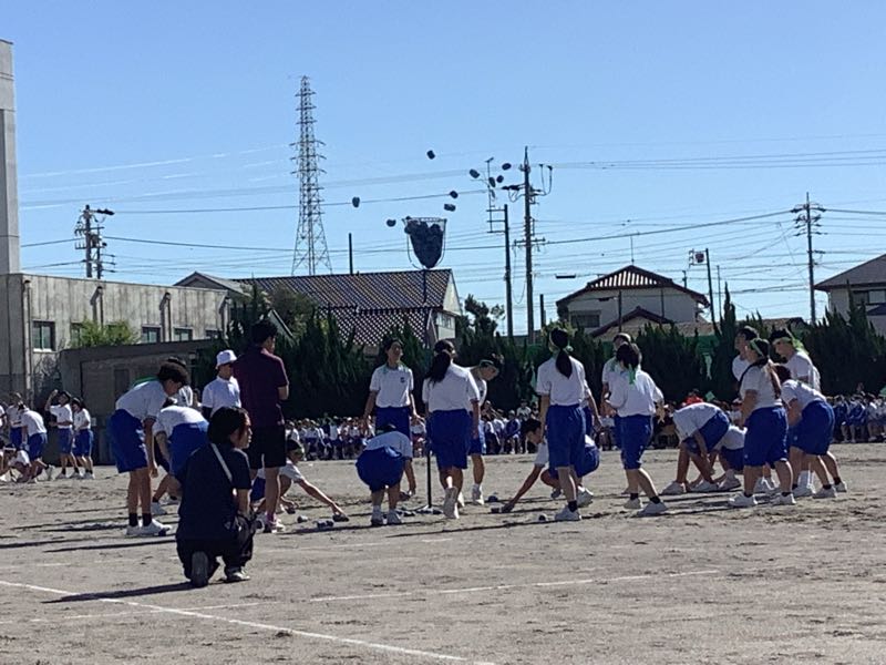 今年から全員が参加できる競技ということで、3年生は、『結束玉入れ(4人5脚玉入れ)』『大縄跳び』の2種目。そして、選抜された男女4人ずつで走る『8×100mリレー』でした。