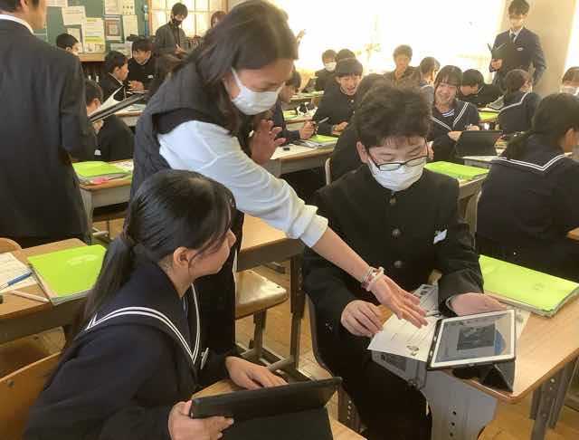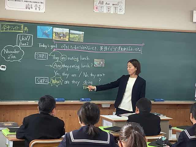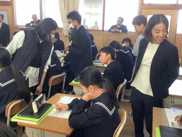 1年3組 英語で授業研究会が行われました。現在進行形の疑問文について学びました。新しいALTの先生の生まれたフィリピンの観光地やアクティビティについて知ることもできました。Unit7の学習を通して現在進行形を学び、愛知県のおすすめ観光地についてプレゼンをします。どんなプレゼンになるか、楽しみです!