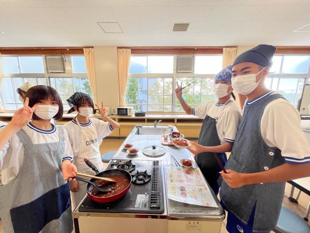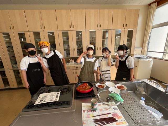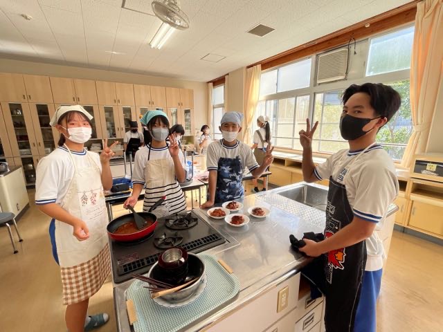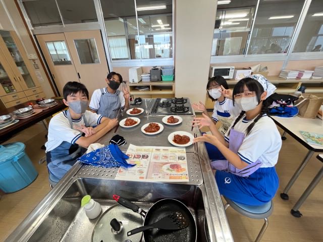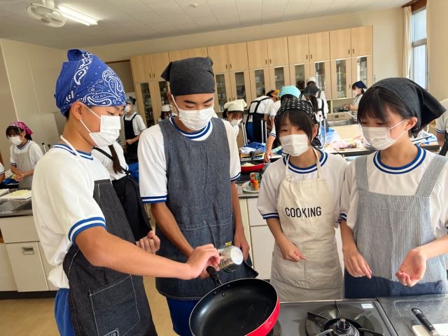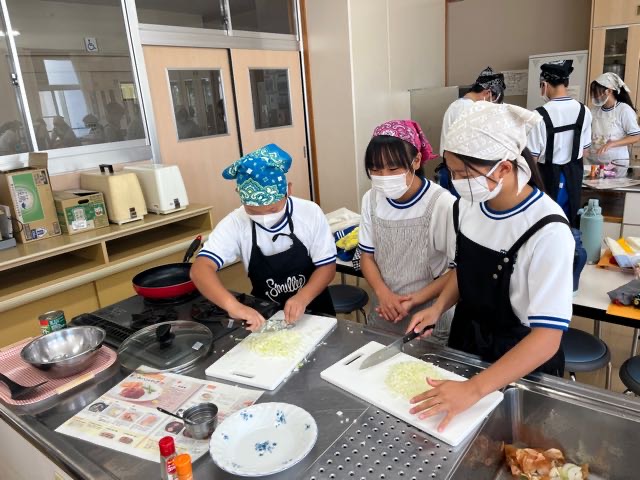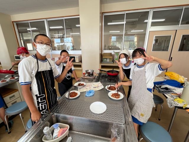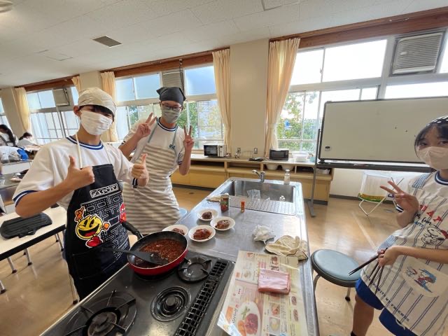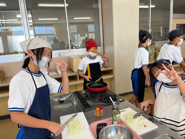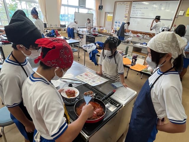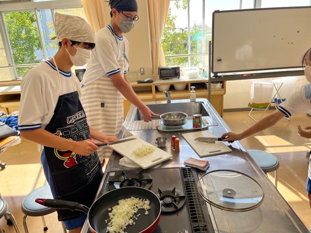 2年2組の調理実習の様子です。投稿が遅くなってしまい、2組のみなさんごめんなさい。みじん切りも班ごとに協力して切り終える姿が見られました!ハート型でも崩れずきれいに完成させました。