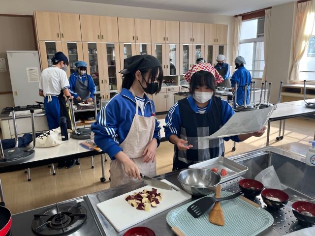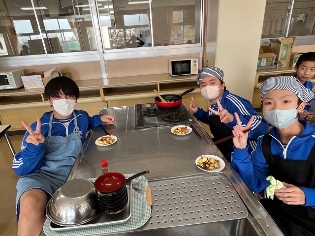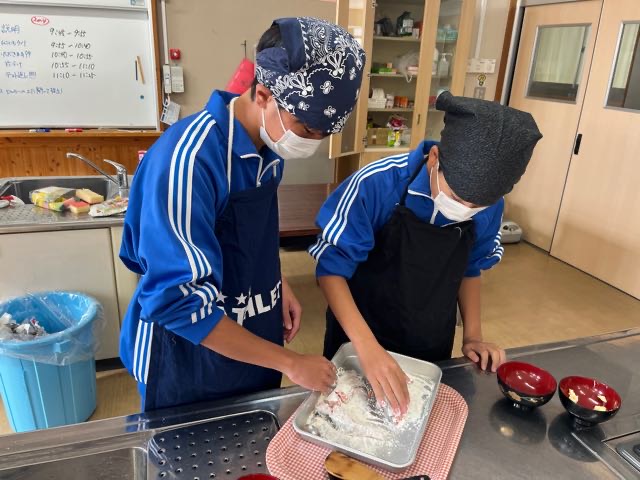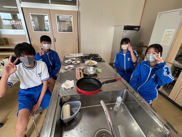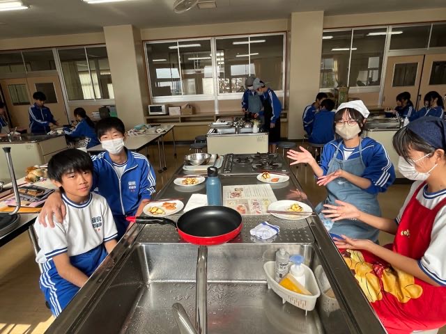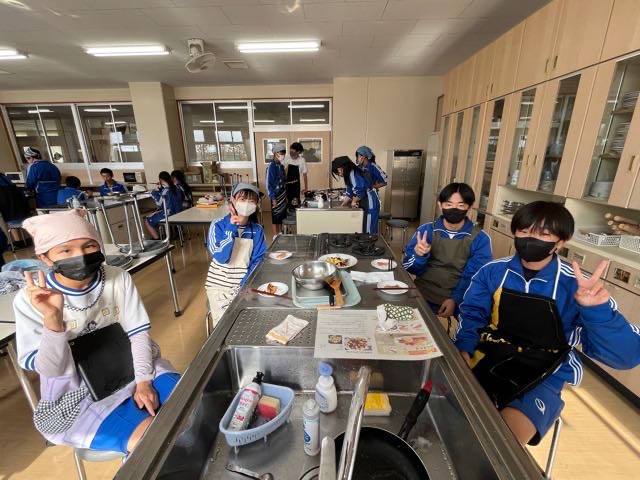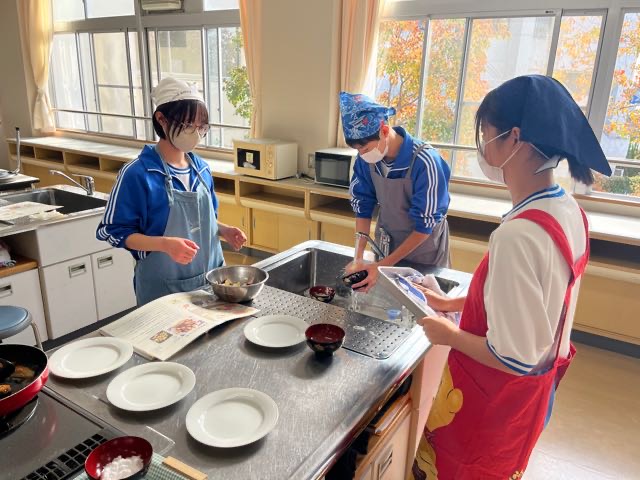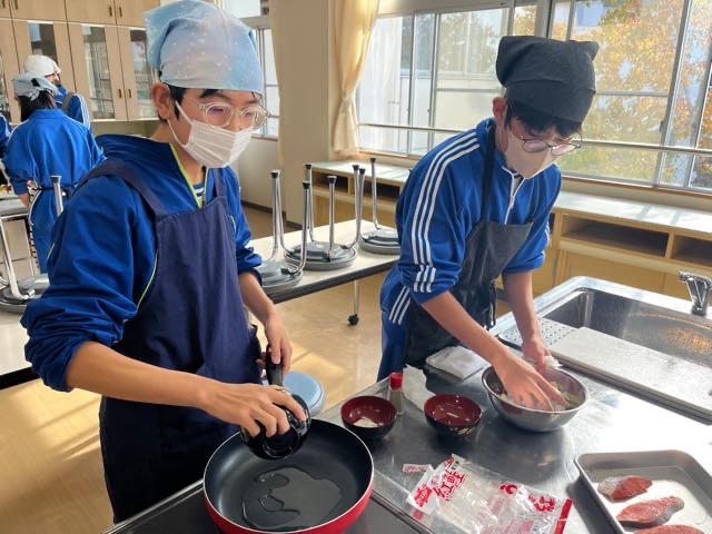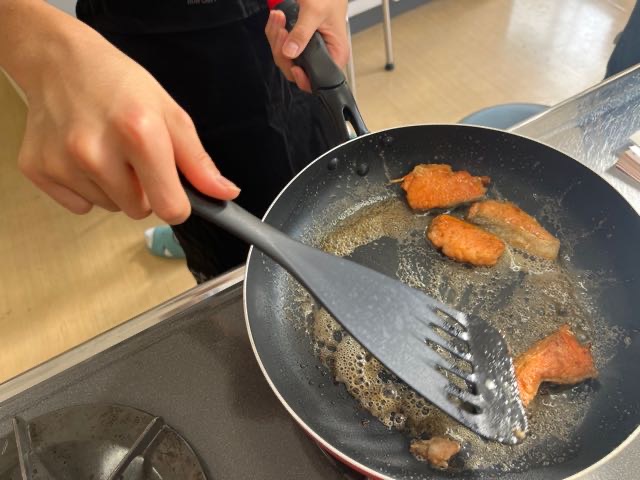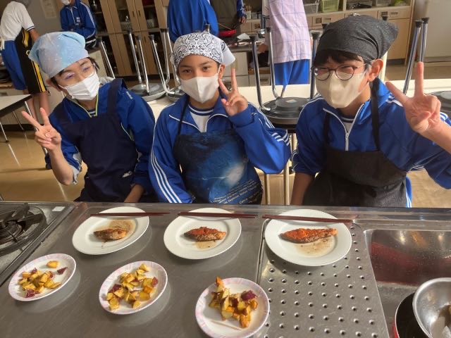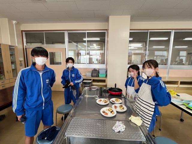 4組の実習の様子です。どの班もムニエルを焦がさずに美味しく焼くことが出来ました!