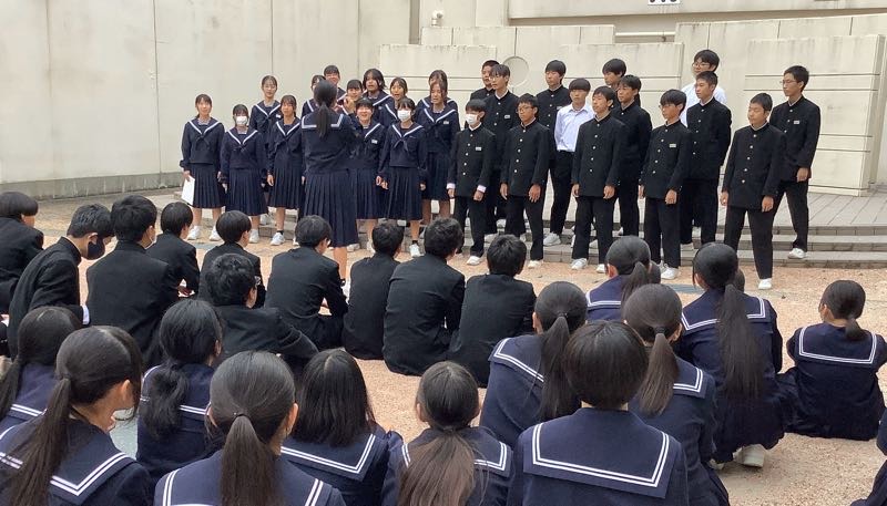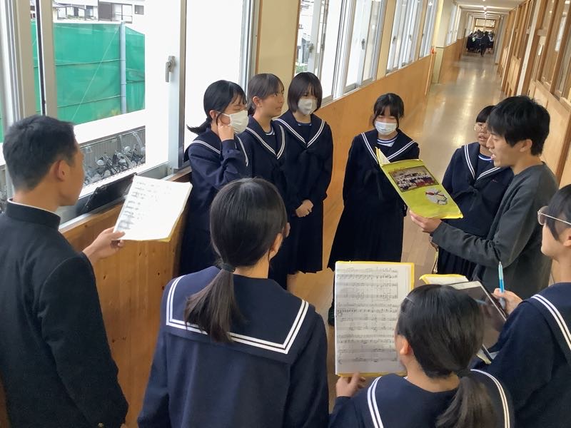 文化の創造に向けて各クラス合唱の練習に励んでいます。教室や廊下、アリーナ、外など、いろいろな所で歌声が響いています。本番まであと少しとなりました。よりよい合唱となるように残りの練習も大事にしていきたいと思います。