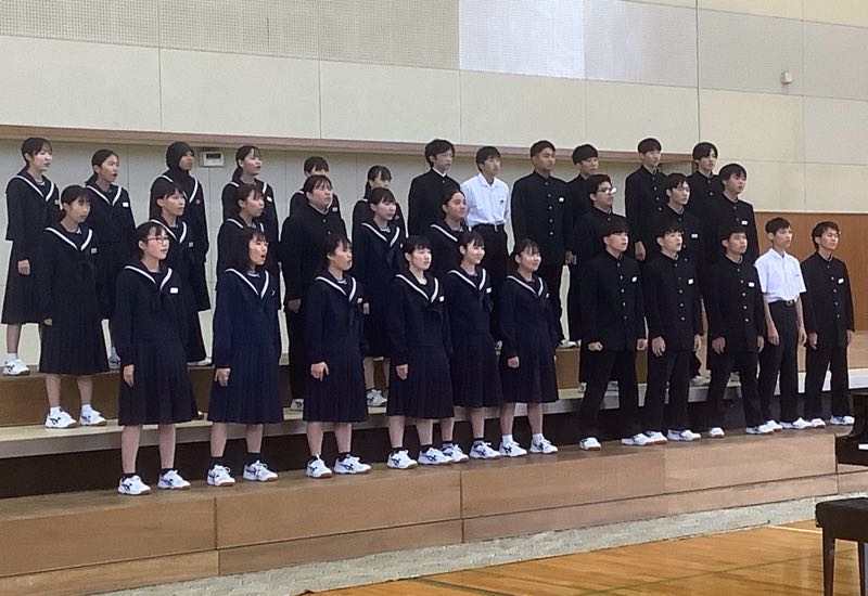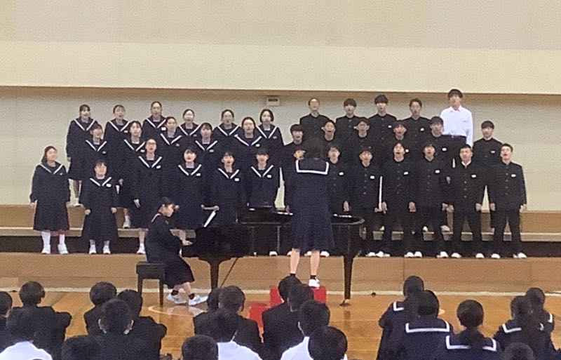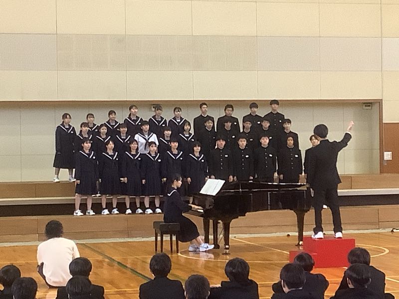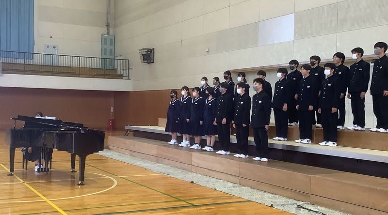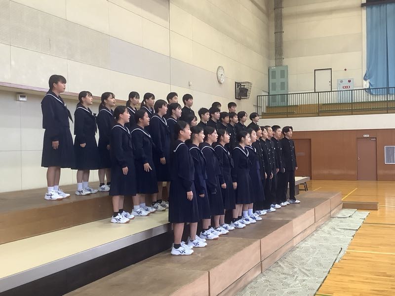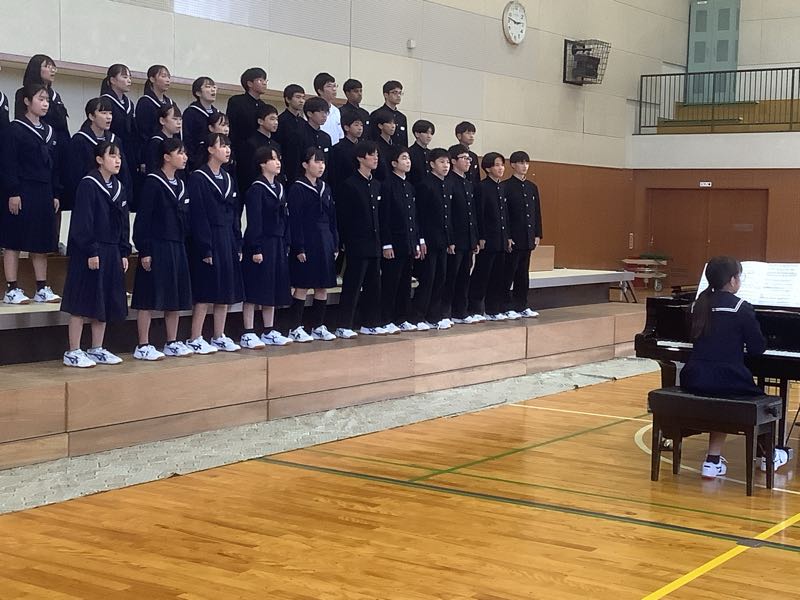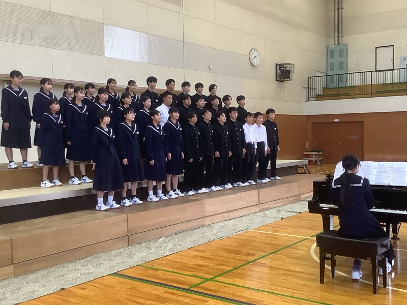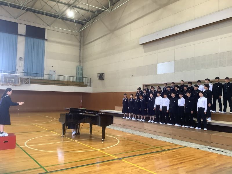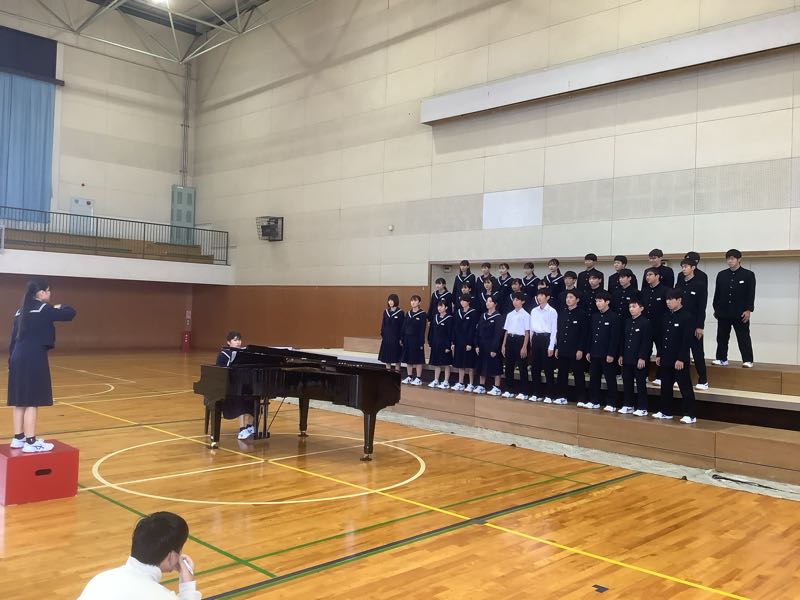 今週の金曜日は、合唱コンクールです。6時間目にアリーナでリハーサルを行いました。少し風邪気味の生徒が多いクラスもあり、合唱コンクール当日までには、体調を戻していきたいですね。 合唱コンクールの順番と同じように動きました。リハーサルの様子です。