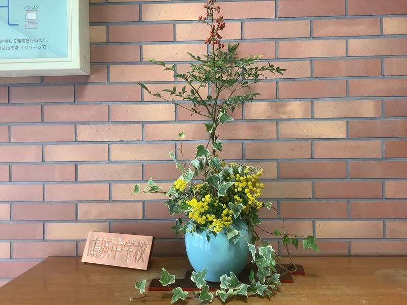 11月の第1週と第2週の生け花です。 第1週の生け花は、ナンテン、コギク、ツタです。