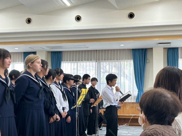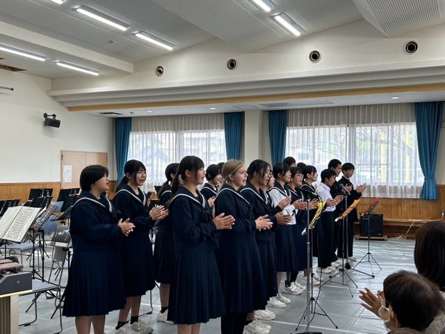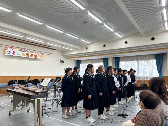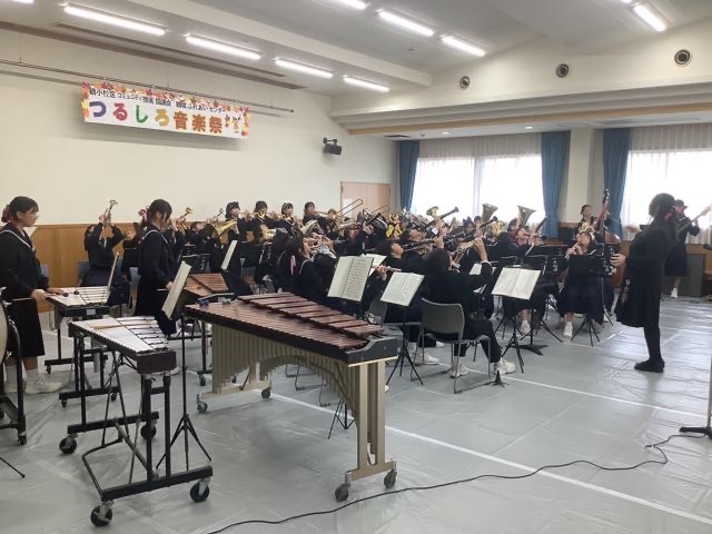 鶴城ふれあいセンターで、つるしろ音楽祭が行われました。吹奏楽部とコーラス部の合同ステージで、令和、平成、昭和と幅広い世代の人気曲を演奏して、会場のお客様たちと一緒に盛り上がりました!たくさんの方が会場に足を運んでくださり、とてもにぎやかなステージとなりました!聴きにきてくださりありがとうございました。吹奏楽部とコーラス部は、鶴中文化の創造でもそれぞれ演奏を披露します!