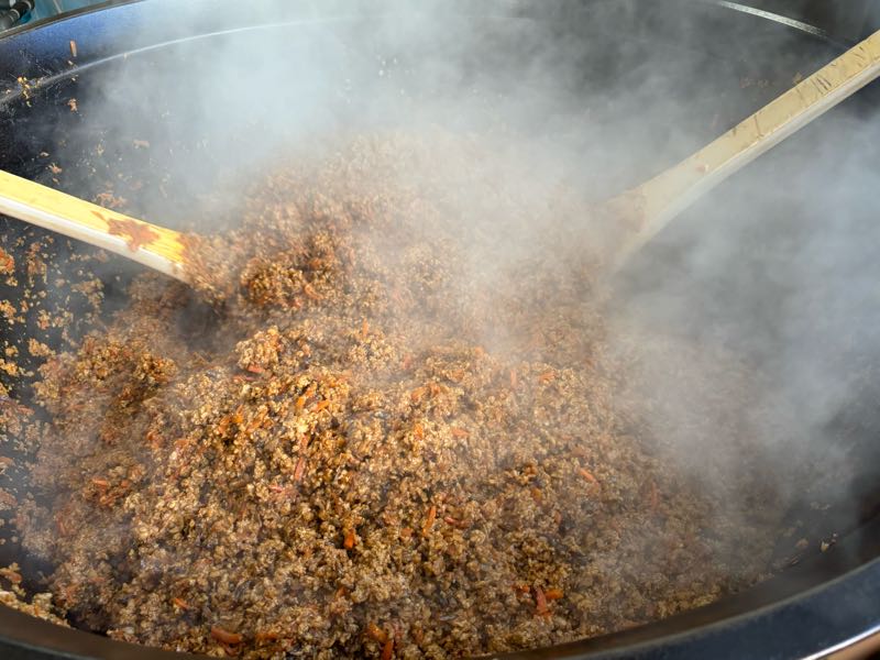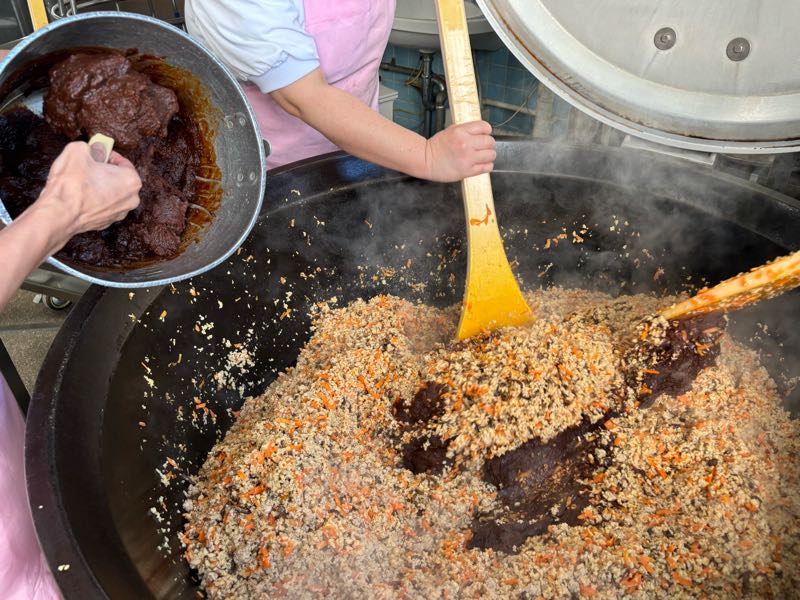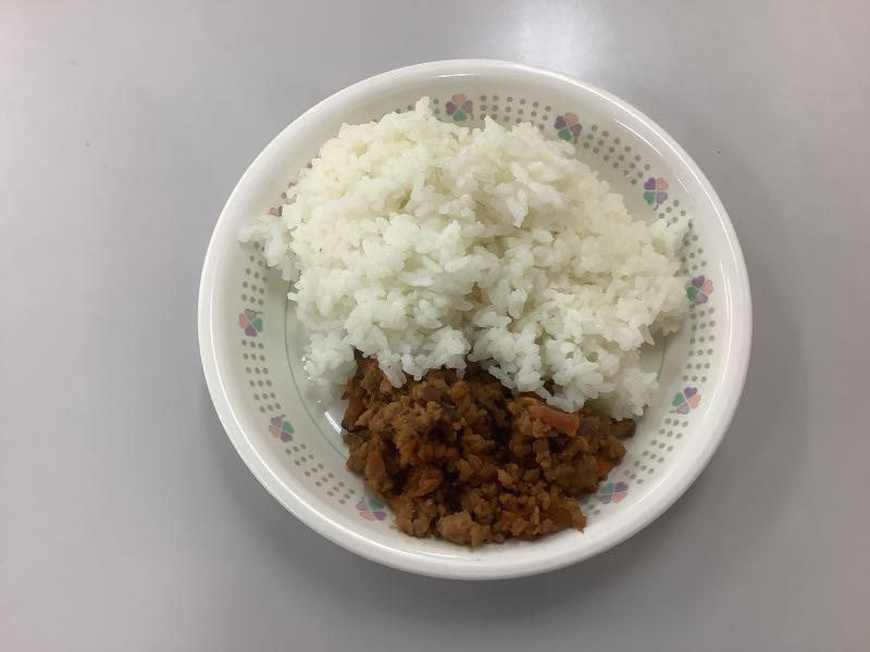 今日は愛知を食べる学校給食の日献立を提供しました。愛知県産や西尾市でも生産のある食材をたくさん使っています。その中でも「にしおの肉みそ」は西尾市産の豚ひき肉と一緒に大豆、にんじん、しいたけを炒め、西尾市産の豆みそを使い、肉みそを作りました。