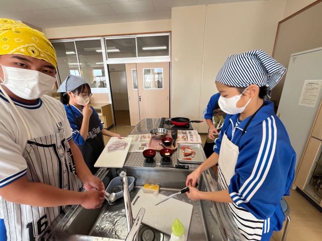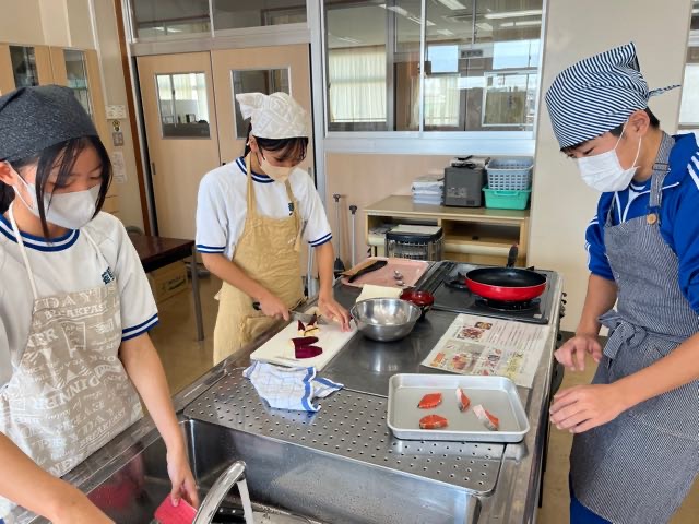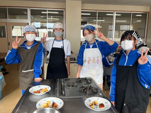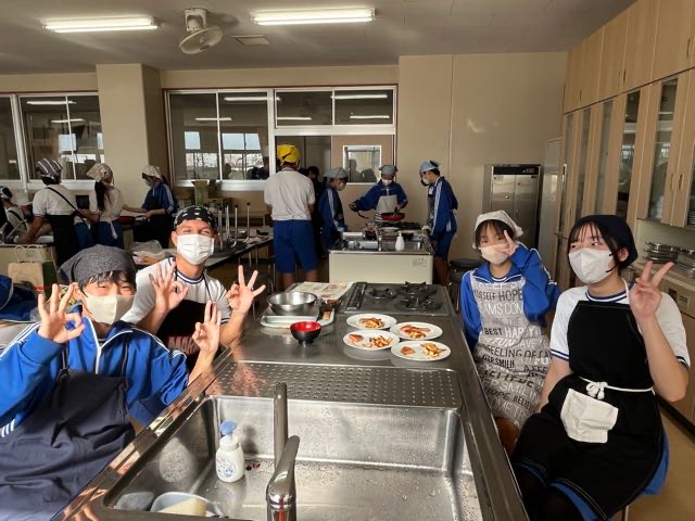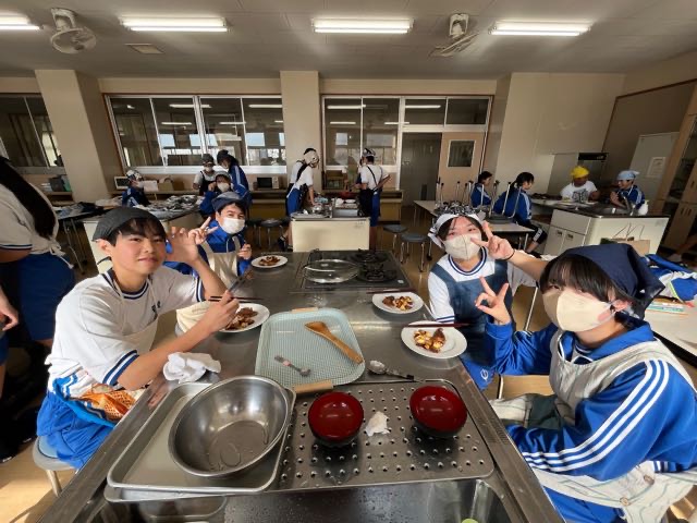 先週の3組の実習の様子です。火加減が難しい調理でしたがみんなで確認しながら美味しく作るとこが出来ました!