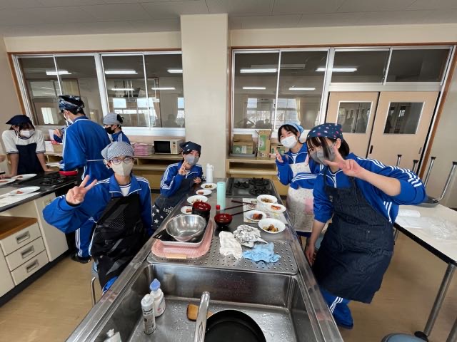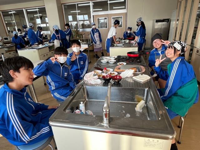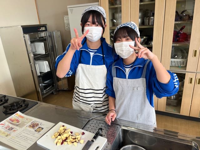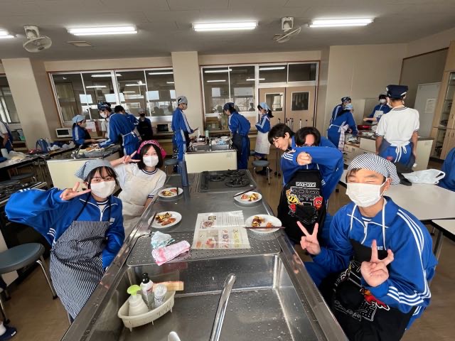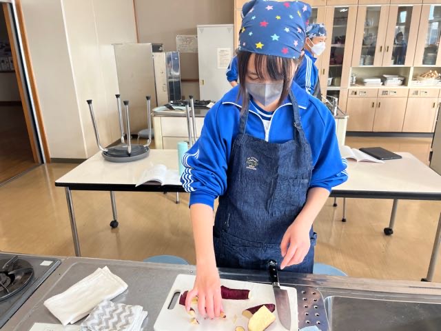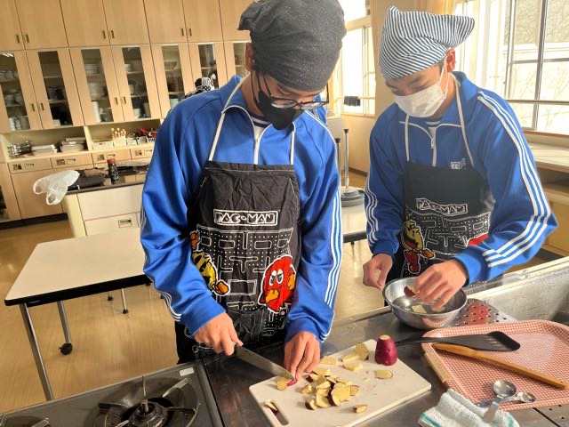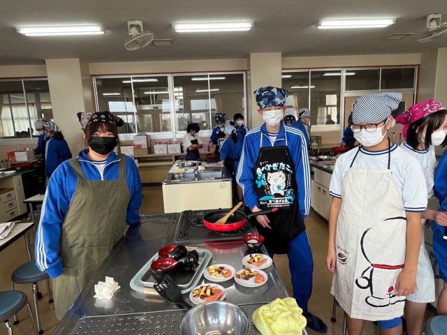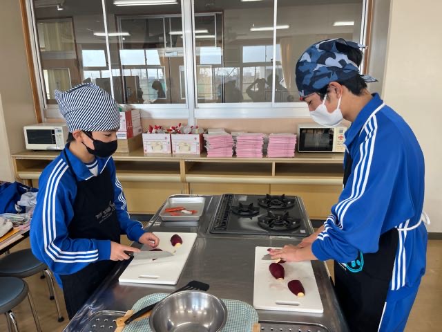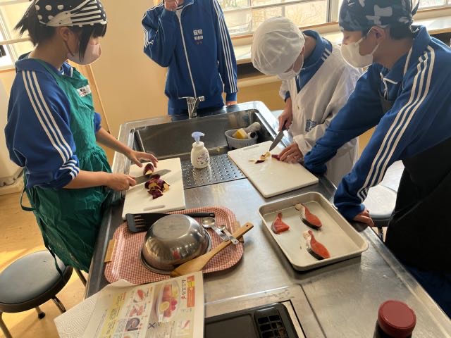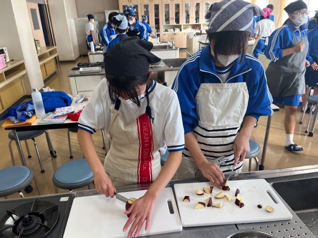 昨日の7組の実習の様子です。和気あいあいとした雰囲気で楽しく美味しくムニエルと大学芋を作ることが出来ました。