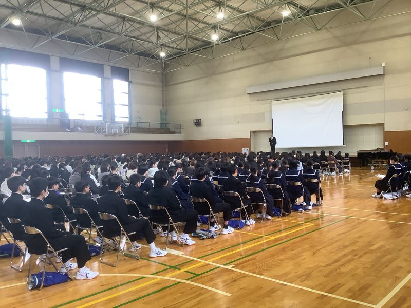 来年度、鶴城中学校に進学する予定の児童と保護者を対象にした入学説明会が開かれました。令和5年度までは、各小学校へ出向いて説明をしていましたが、昨年度から各小学校のみなさんが鶴城中学校に集まっていただき、説明する方式に変更になりました。