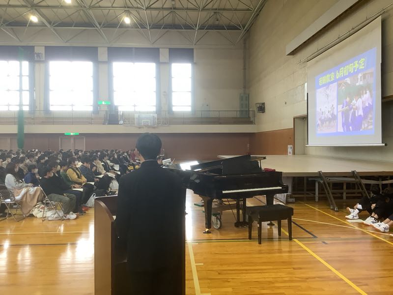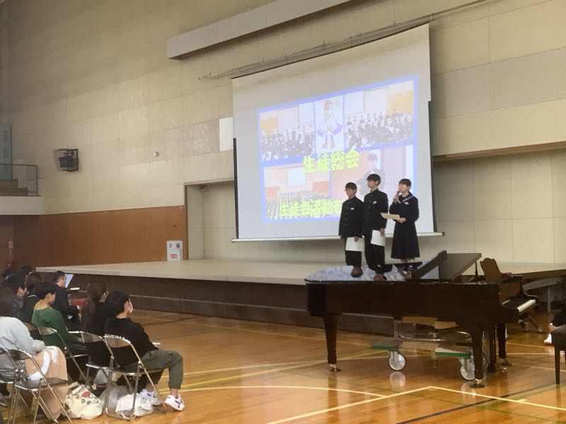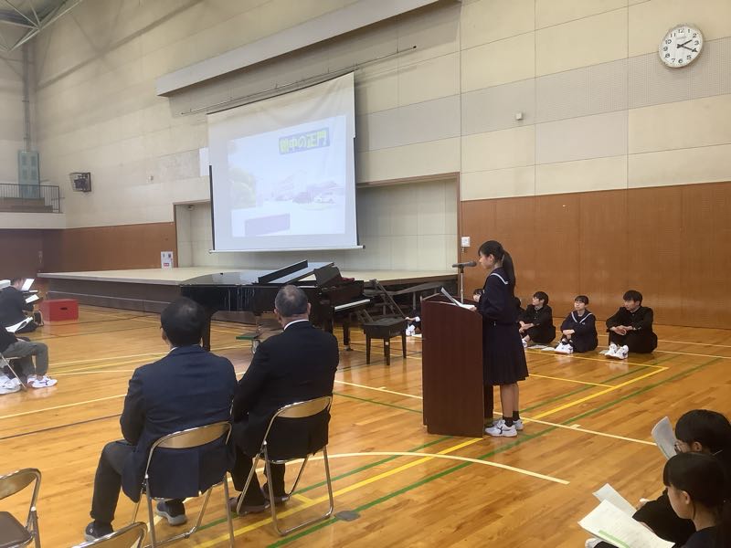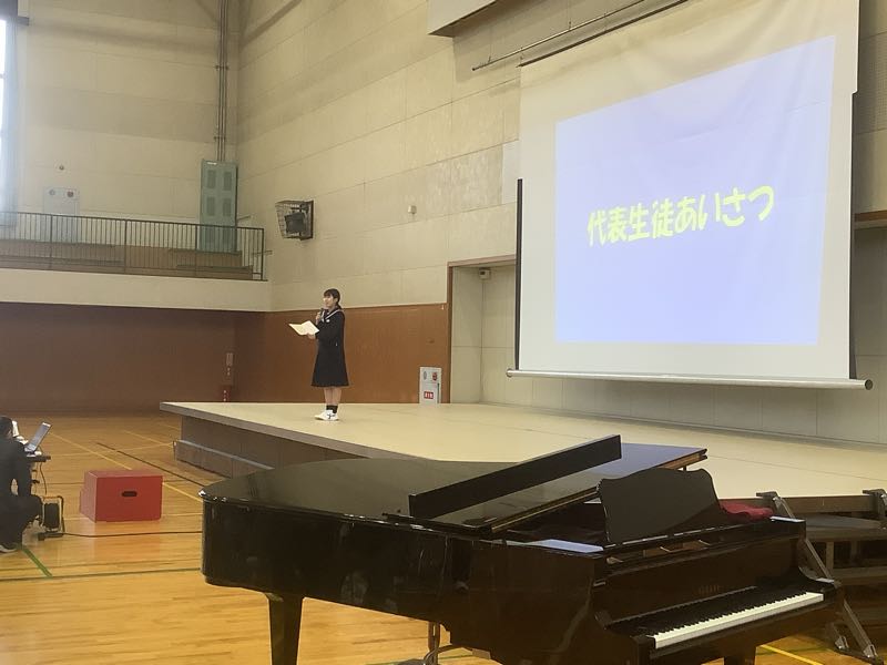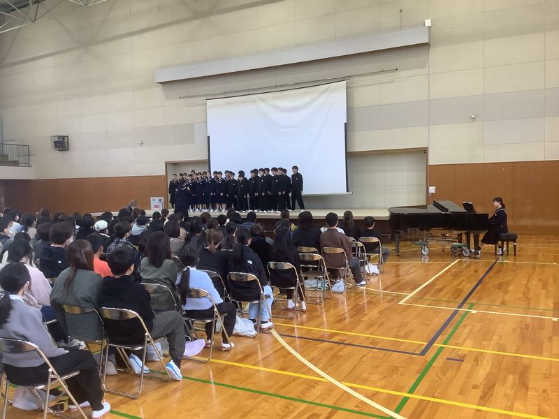 アリーナでの説明会の最後は、合唱コンクールで最優秀賞に輝いた1年生のクラスの合唱があり、1年生の歌声がアリーナに響きました。